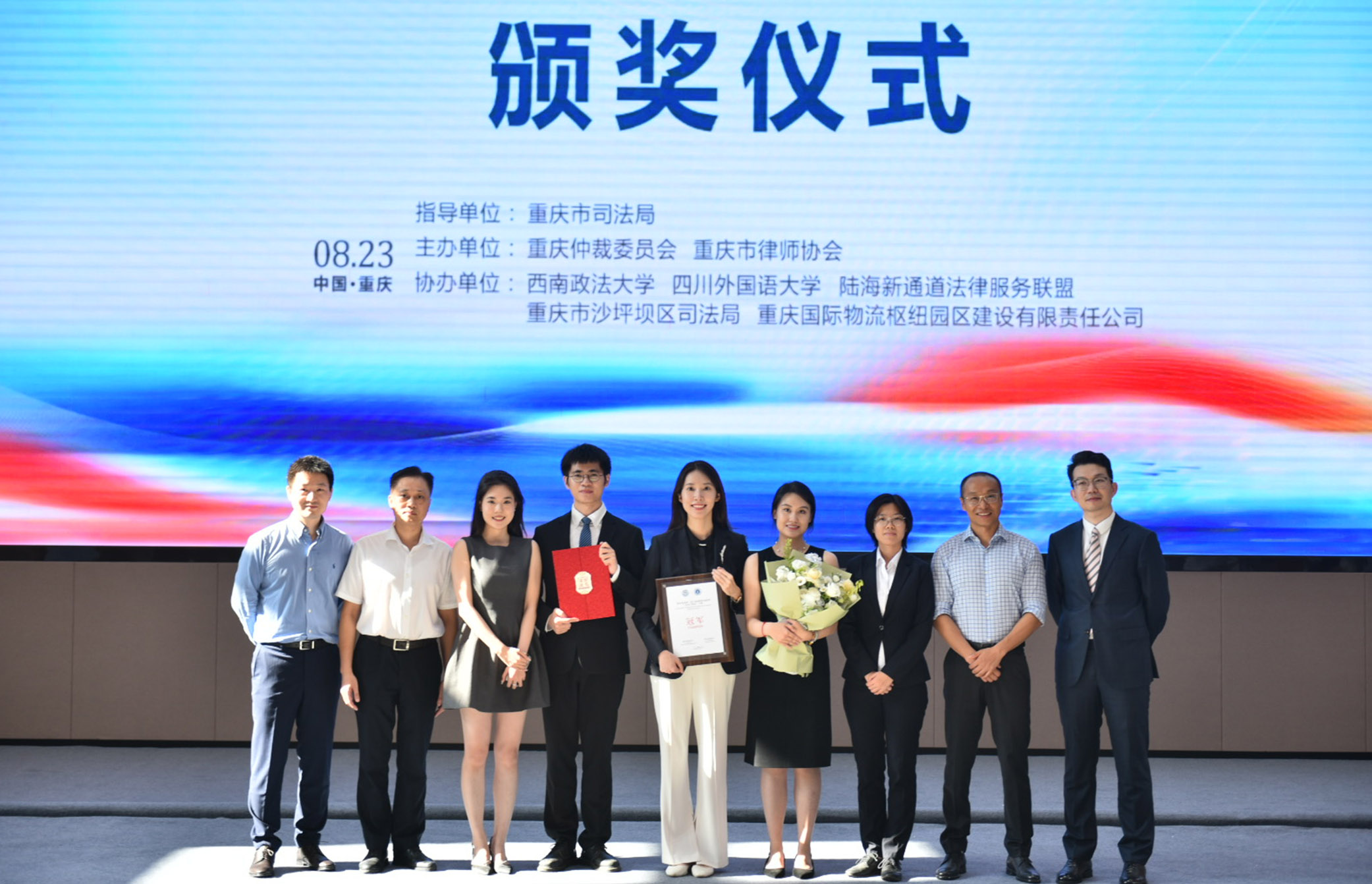 - 8月23日下午,由重庆市司法局指导,重庆仲裁委员会、重庆市律师协会主办的“重庆仲裁杯”第六届律师仲裁庭审(全英文辩论)大赛决赛在西部陆海新通道国际法务区盛大举行。大赛共有12支队伍参赛,经过初赛、半决赛、决赛的激烈角逐,重庆百君律师事务所斩获“重庆仲裁杯”第六届律师仲裁庭审(全英文辩论)大赛冠军。这是继“重庆仲裁杯”第三届、第五届律师仲裁庭审大赛之后,百君第三次夺得魁首。